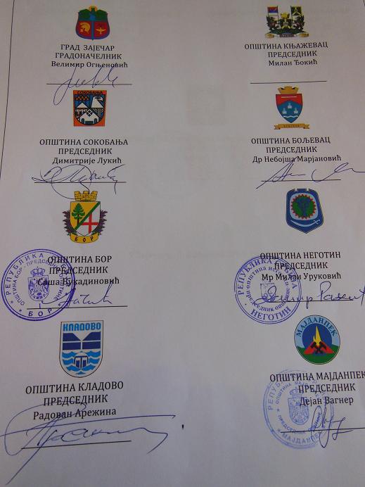 Осим општине Кладово споразум су потписали и представници општина Неготин, Бор, Мајданпек, Сокобања, Бољевац и града Зајечара.